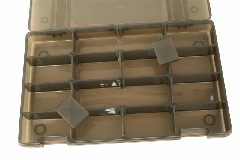 - A winning concept in organisation and storage these boxes are made of durable plastic and have adjustable individual compartments. Cover and closures are separately removable, not fixed, and therefore cannot break off. In addition the boxes are plasticiser-resistant and, therefore, suitable for storage of all kinds of rubber baits.