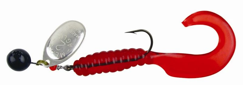 - Weight headed lure with an articulating hook fitted with a soft curly tail, its blade spins and its tail wriggles when sinking and reeling up as well, it can be jigged, drifted, dragged, cast or trolled, it can be counted down to fish and depth, for zander, perch, pike and bass.